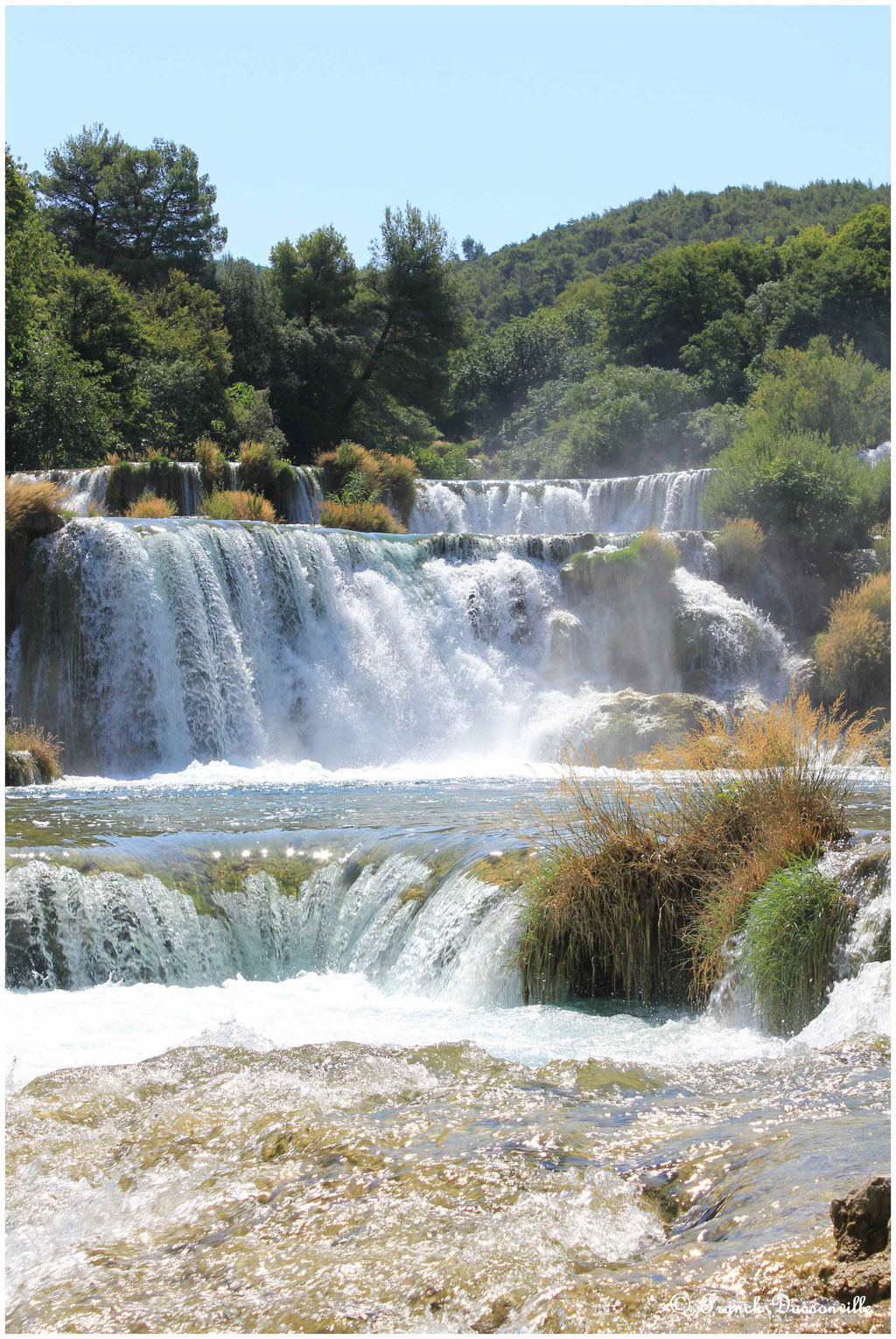 On s'attaque donc à la balade à pieds, sur un sentier d'environ 2 km qui nous mène aux chutes de Skradinski Buk sur des passerelles en bois à travers la forêt. C'est super sympa, il y a de nombreux points de vues, et les chutes sont somptueuses, on peut même s'y baigner !