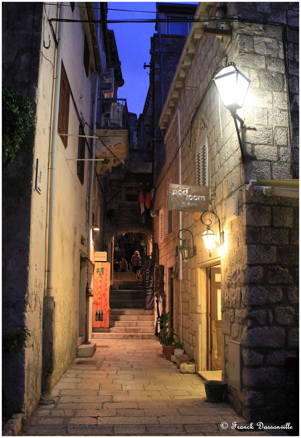 En soirée nous prenons le bateau taxi vers l’île de Korcula. L'arrivée de nuit est féerique ! Cette cité médiévale d'où serait natif Marco Polo est un vrai bijou. C'est un véritable plaisir de découvrir toutes ces superbes demeures, toutes ces tours, toutes ces pierres et le coté nocturne de cette visite, moins classique que de jour est franchement magique. Ce sera notre gros coup de cœur en Croatie ! Hélas, le temps nous est compté puisque le dernier bateau est à 23h00 et qu'il ne faut pas le louper sous peine de dormir à la belle étoile sur l’île !