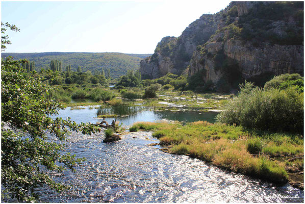 Nous partons donc avec Martin. L'entrée du parc n'est qu'à 5 km environ. Nous achetons les billets (260 kn) et ensuite un bus nous descend quelques km plus bas. Il y a déjà foule... nous voulions réserver le bateau qui mène à l'île de Visovac mais plus rien disponible avant 14h00 !