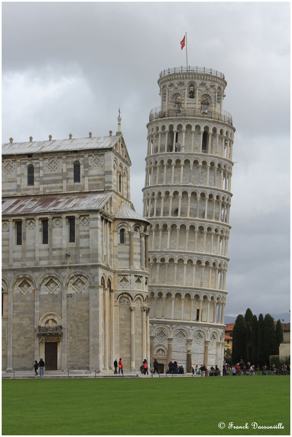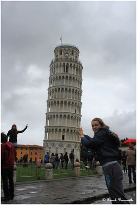 Nous visiterons d'abord la cathédrale, magnifique et dans un super état de conservation, puis nous monterons dans la tour pour faire plaisir à Victoria, mais le coût (15€ par personne !!!) n'est vraiment pas justifié même si l'on se rend compte à l'intérieur durant la montée qu'elle penche vraiment... ce sera ensuite la petite photo souvenir pour maintenir la tour... et en route !