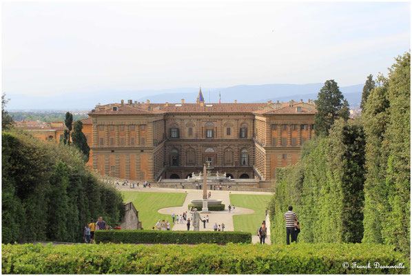 En guise de dessert, nous nous attaquons à la visite du Palazzo Pitti dit le "Versailles Florentin": hum hum... si effectivement certaines salles peuvent nous laisser y croire, ce n'est ni la façade austère de blocs de pierre, ni les jardins mal entretenus, ni l'atmosphère générale qui peuvent nous évoquer le chef d'œuvre français ! On est dans l'intox publicitaire...