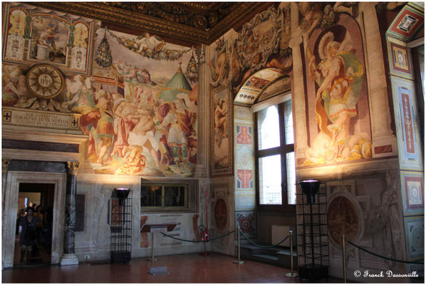 Nous commençons notre visite par le Palazzo Vecchio aux incroyables décorations murales et de plafond d'une finesse exceptionnelle, à la gigantesque salle des Cinq Cent très impressionnante surtout vue de la mezzanine, très belle salle des cartes géographiques également. Belle et agréable visite.
