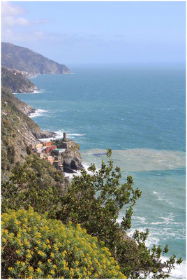 Nous rejoignons Monterosso par le sentier longeant la falaise, sentier très technique et épuisant mais offrant des vues exceptionnelles sur la mer et les villages. Il faut compter environ 2 heures pour effectuer seulement 3 km mais c'est une balade à faire absolument !