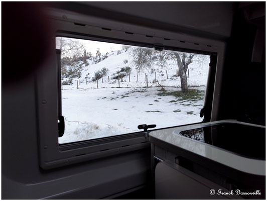 Réveil toujours sous le soleil mais avec une température extérieure plus froide que les jours précédents puisqu'il fait -3°.