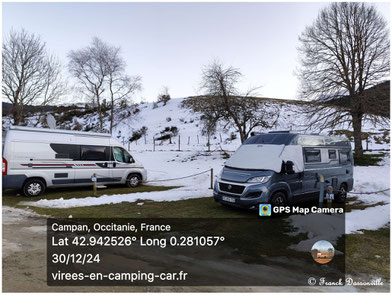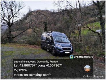 Déjeuner, petite sieste, services et reprise de la route pour un changement de vallée et une installation sur l'aire privée de Payolle, où heureusement nous avions pris la précaution avant-hier, de réserver quand on a vu que tous les campings de Luz étaient pleins, car ici aussi c'est totalement full !