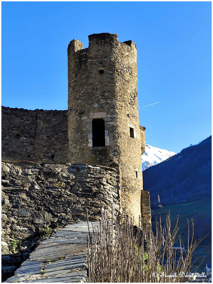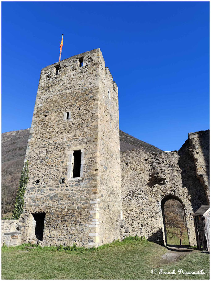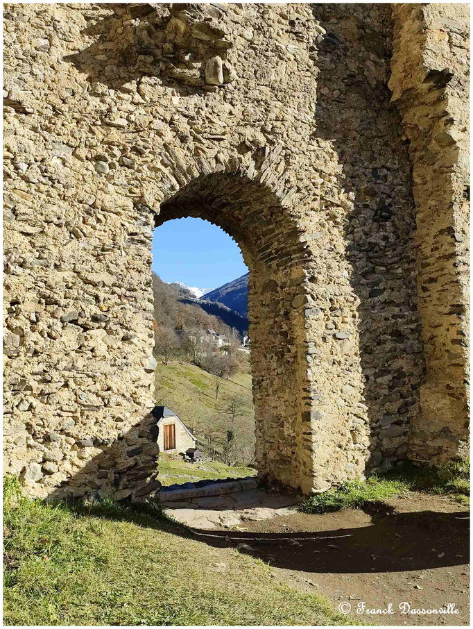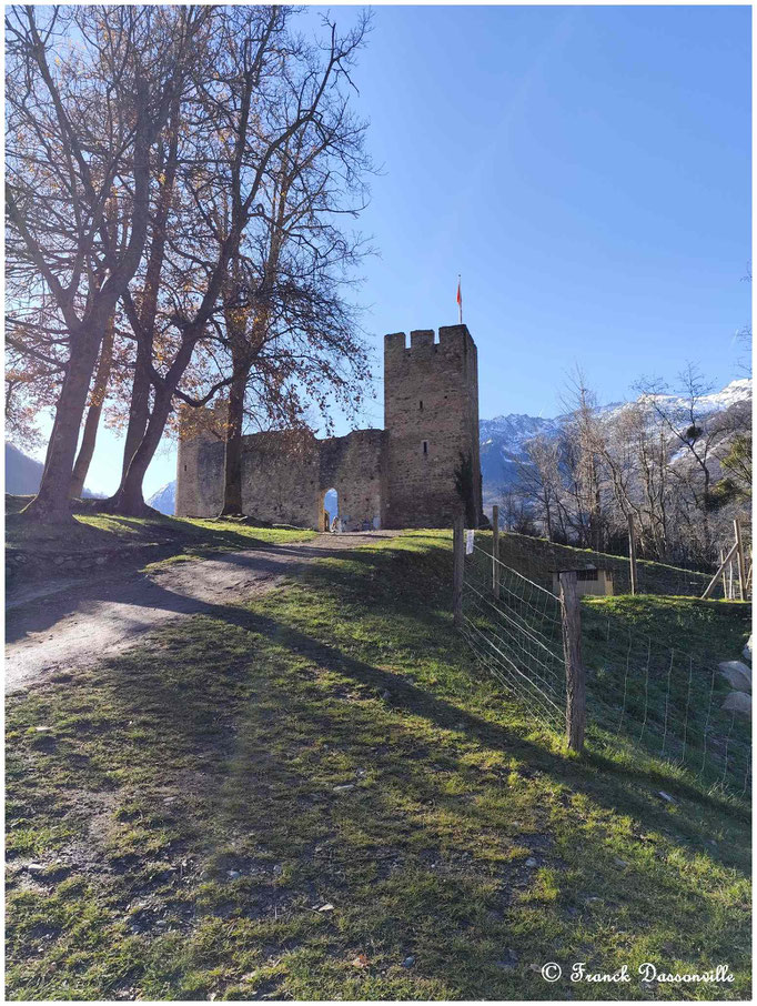 Au village, nous prenons la direction du vieux château, empruntons un petit sentier bien pentu, et arrivons à l'édifice quasi en ruines, mais qui offre une belle vue sur les environs.