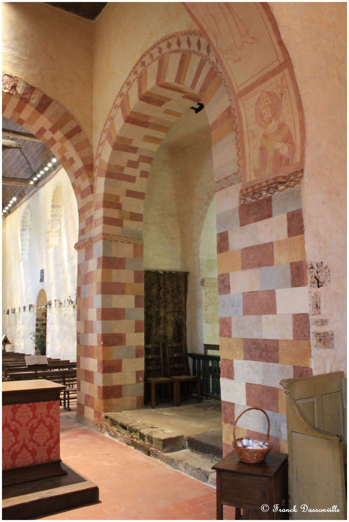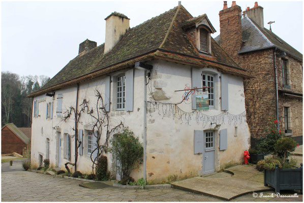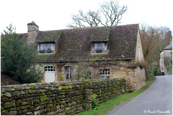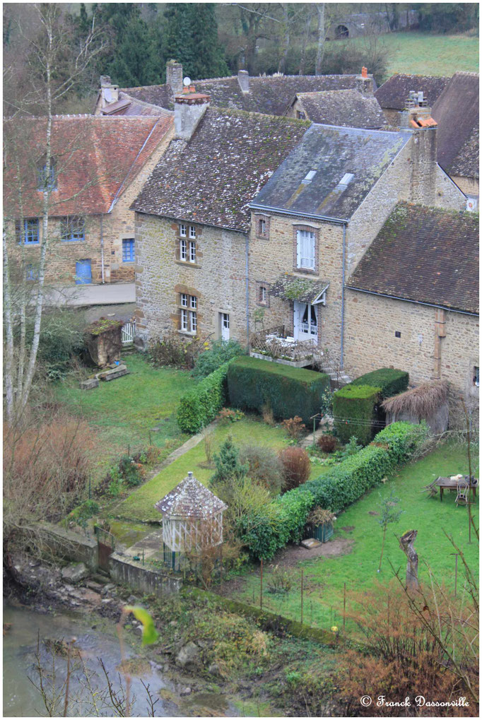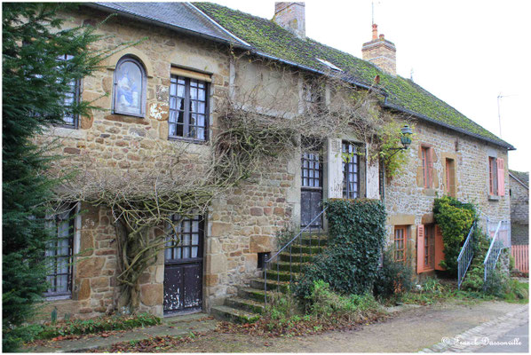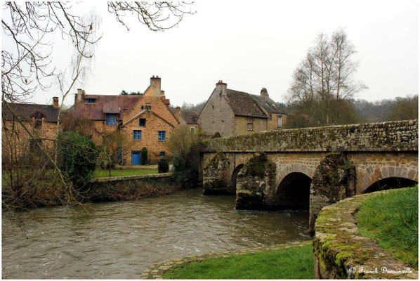 Premier arrêt 3 heures plus tard à Saint-Céneri le Gérei (61), village classé PBVDF. Nous stationnons et déjeunons sur un beau parking en bord de rivière, puis après s'être chaudement vêtus... nous nous lançons à la découverte de ce tout petit village qui inspira de nombreux peintres au 19 ème siècle. Et il est vrai, malgré le temps couvert, que cet endroit est tout mignon, avec une jolie église aux piliers multicolores, une chapelle perdue au milieu d'un pré, un petit pont de pierre et de belles maisons.