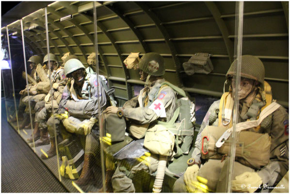 Dans un dernier bâtiment, une reconstitution son et lumières simule notre propre parachutage, c'est assez sympa et très bien fait !