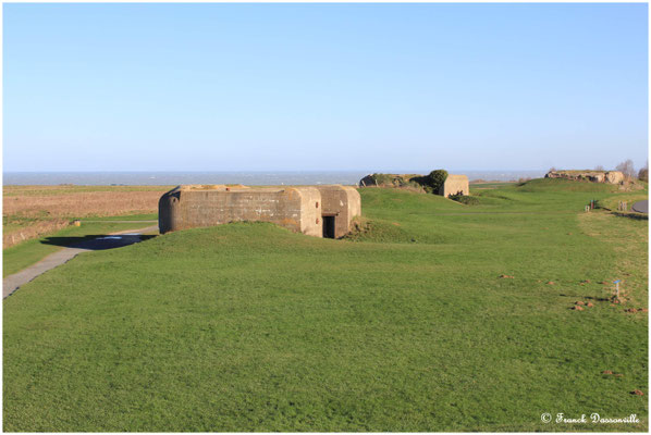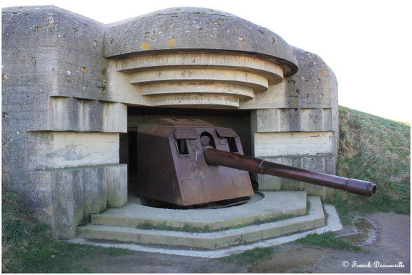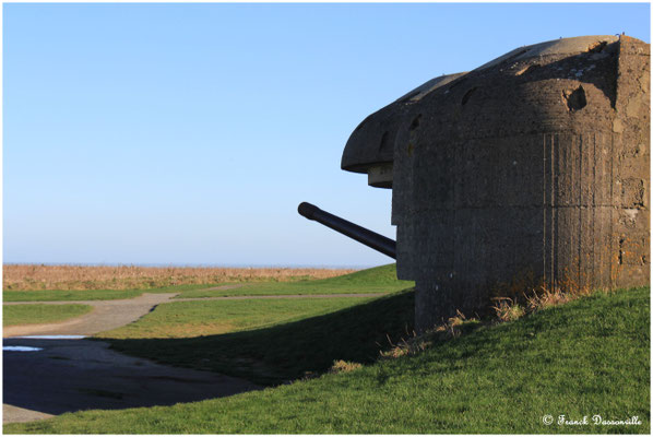 Retour vers Martin, et direction Longues sur Mer (14), stationnement et déjeuner sur le site des batteries allemandes, site classé monument historique, et le seul a posséder encore ses canons d'époque. On peut y voir 4 casemates avec chacune une pièce d'artillerie de 150 mm et un poste de commandement. Visite libre et intéressante.